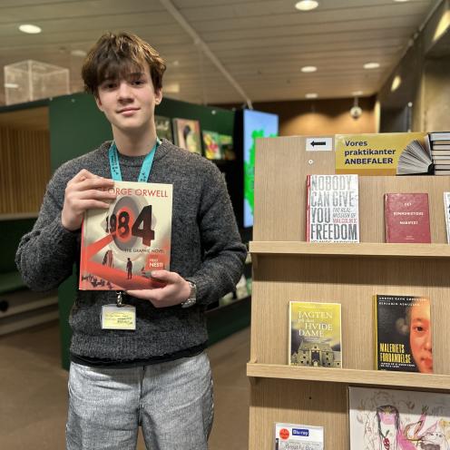 "En bog skrevet i 1948 - forudser den fremtiden?" spørger Noah, som vi her på Aalborg Bibliotekerne har haft fornøjelsen af at have i praktik. Bogen, han taler om, er George Orwells klassiker "1984". En af opgaverne, som Noah fik i løbet af sin praktikuge, var at lave en udstilling med fede biblioteksmaterialer, han ville anbefale andre at låne. Her er Noahs anmeldelse af "1984", som man blandt mange andre lækkerier kan finde i udstillingen.
