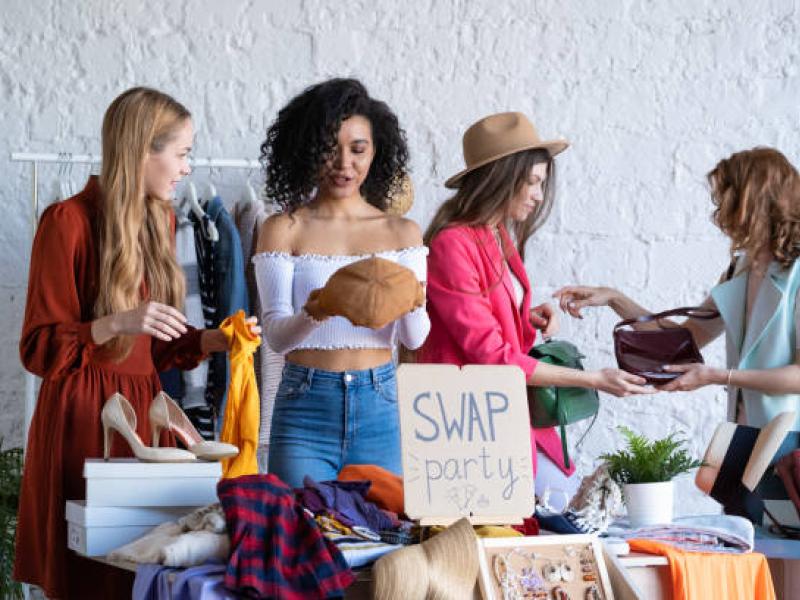 You cannot charge for the clothes, but you can give it to a new happy owner or swap it. You can bring women's and children's clothes and books.